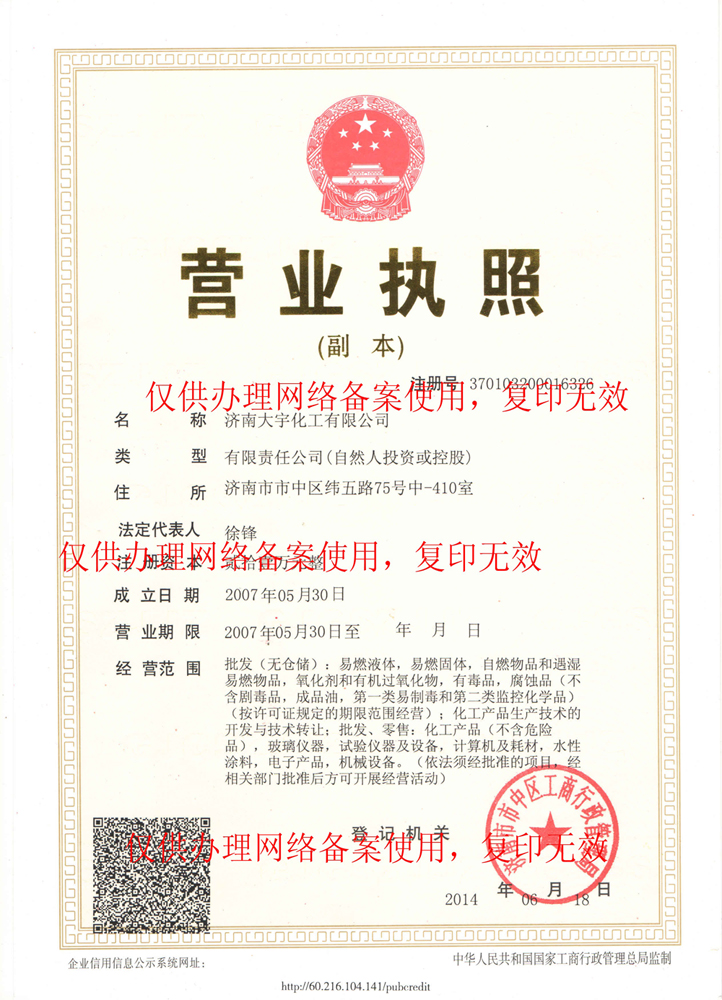 濟南大宇化工有限公司, 總部位于中國—山東濟南泉城,是專業(yè)從事醫(yī)藥和醫(yī)藥中間體、農(nóng)藥及農(nóng)藥中間體、化學試劑及其他精細化學品的研究、開發(fā)和銷售,同時承接海內(nèi)外客戶委托合成和定制加工的醫(yī)藥原料藥企業(yè)。